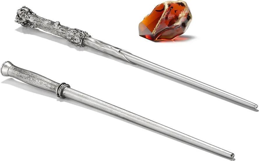Este set premium, que conmemora el 25º aniversario de la película "Harry Potter y la Piedra Filosofal", incluye dos varitas de colección en color plateado y una réplica fiel de la Piedra Filosofal, presentadas en una caja.